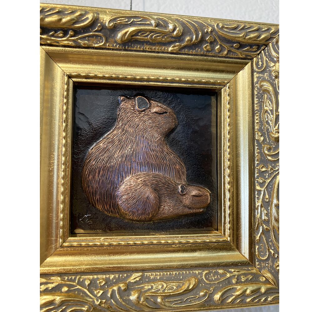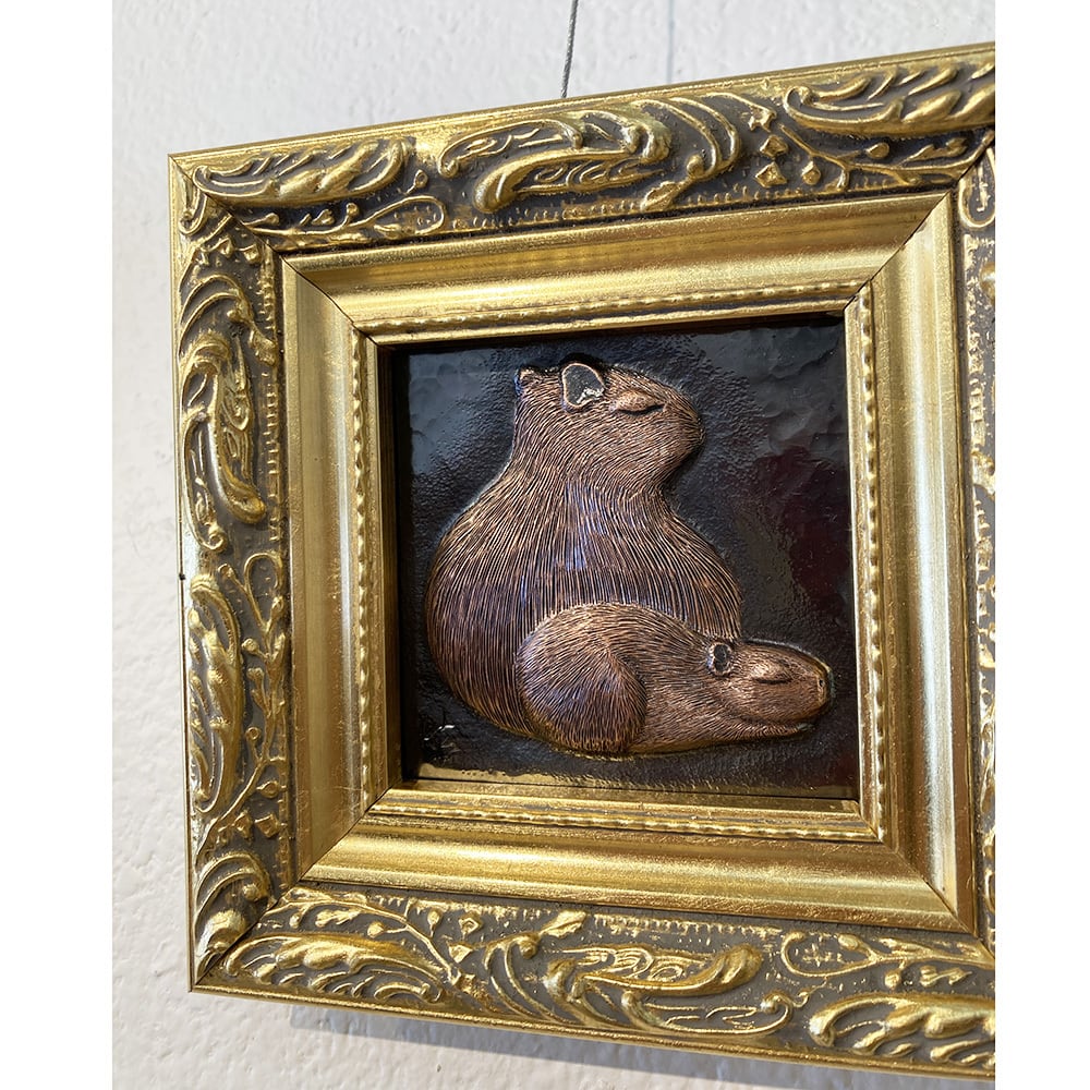 一枚の銅板を打出し、毛並みを一本一本タガネで彫っています